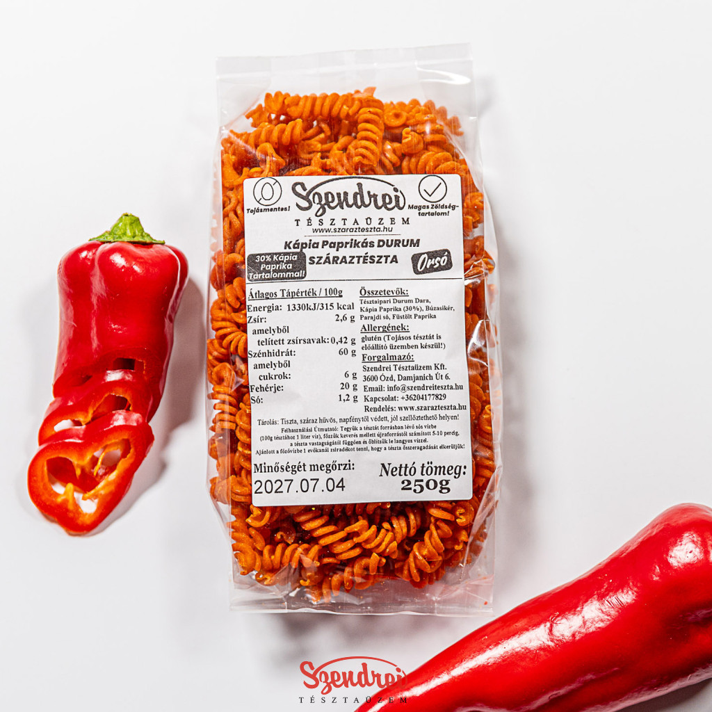 Durum Szendrei Kápia Paprikás Orsó Száraztészta 250gr. - 30% zöldségtartalommal