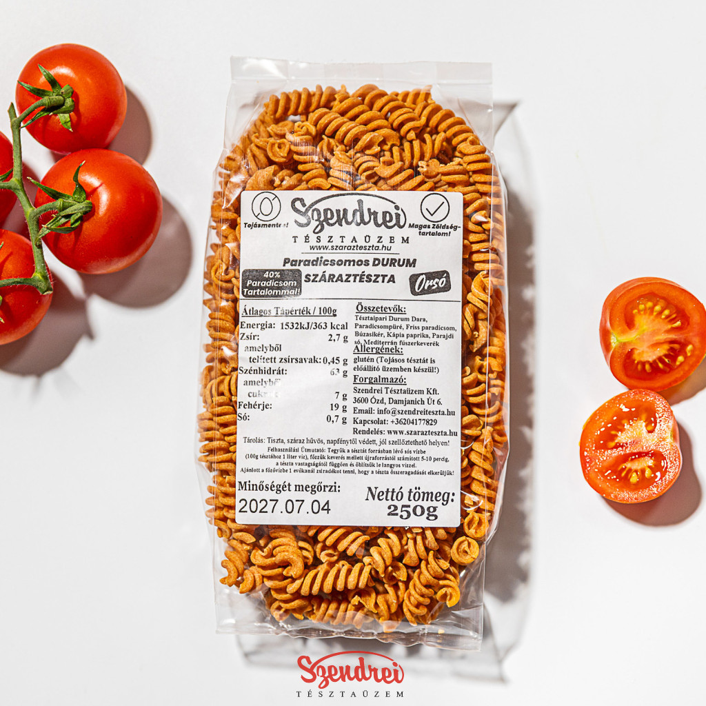 Durum Szendrei Paradicsomos Orsó Száraztészta 250gr. - 40% zöldségtartalommal