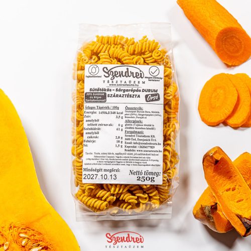 Durum Szendrei Sütőtökös - Sárgarépás Orsó Száraztészta 250gr. - 30% zöldségtartalommal